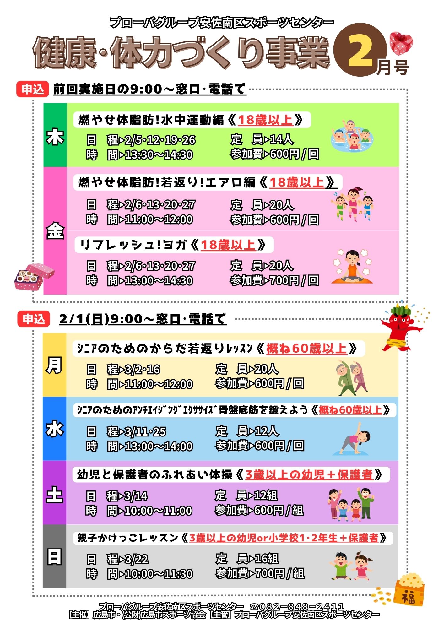 前回実施日の9:00から窓口・電話にて受付(先着順) |